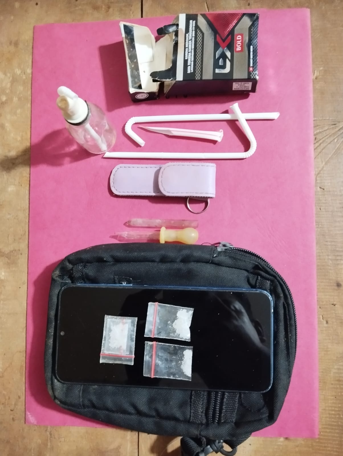 Didapatkan barang bukti berupa 3 (tiga) paket / bungkus plastik klip transparan yang berisikan kristal putih diduga narkoba jenis sabu serta 1 (satu) buah bong (alat hisap sabu) yang disimpan didalam tas kecil yang dipakainya, kemudian terhadap Sdr. ANDIKA FEBRIYANTO beserta barang bukti dibawa ke Polsek Tumbang Titi yang kemudian dibawa ke Sat Narkoba Polres Ketapang untuk proses hukum lebih lanjut.