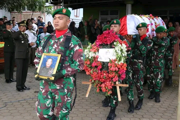 Lampung Utara,Kompas86.Com Isak Tangis Keluarga menghiasai Upacara Pemakaman secara Militer yang dilakukan sebagai Penghormatan terakhir Kepada (Alm) Serka Arwan yang Meninggal Dunia pada tanggal 27 Juni 2024 sekitar pukul 03.15 Wib di RS Handayani Kotabumi dikarenakan Sakit.