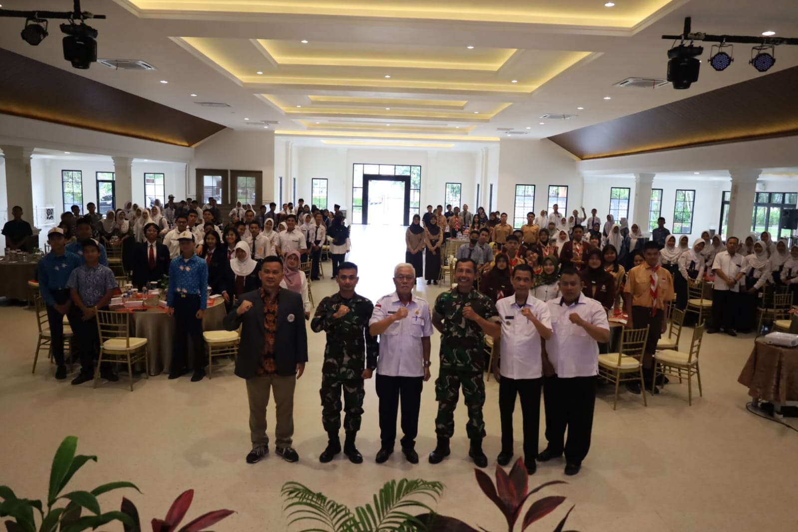 Dandim 0418/Plg Diwakili Danramil 418-07/Skr Mayor Inf Muhammad Yoppy selaku Narasumber memberikan beberapa materi kepada Siswa-siswi SMP Se – Palembang, bertempat di Venue Kebun gede Jln Sultan M Mansyur no 678 Kota Palembang, Jumat (23/2/2024).