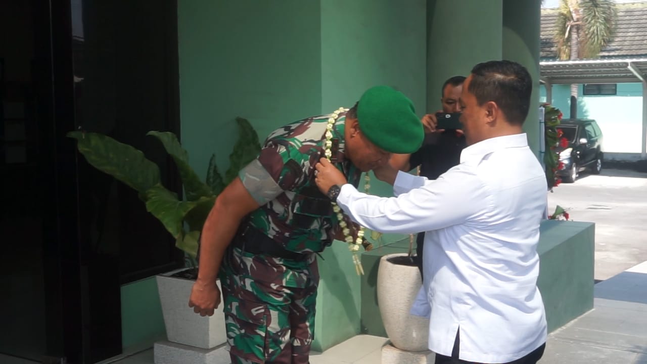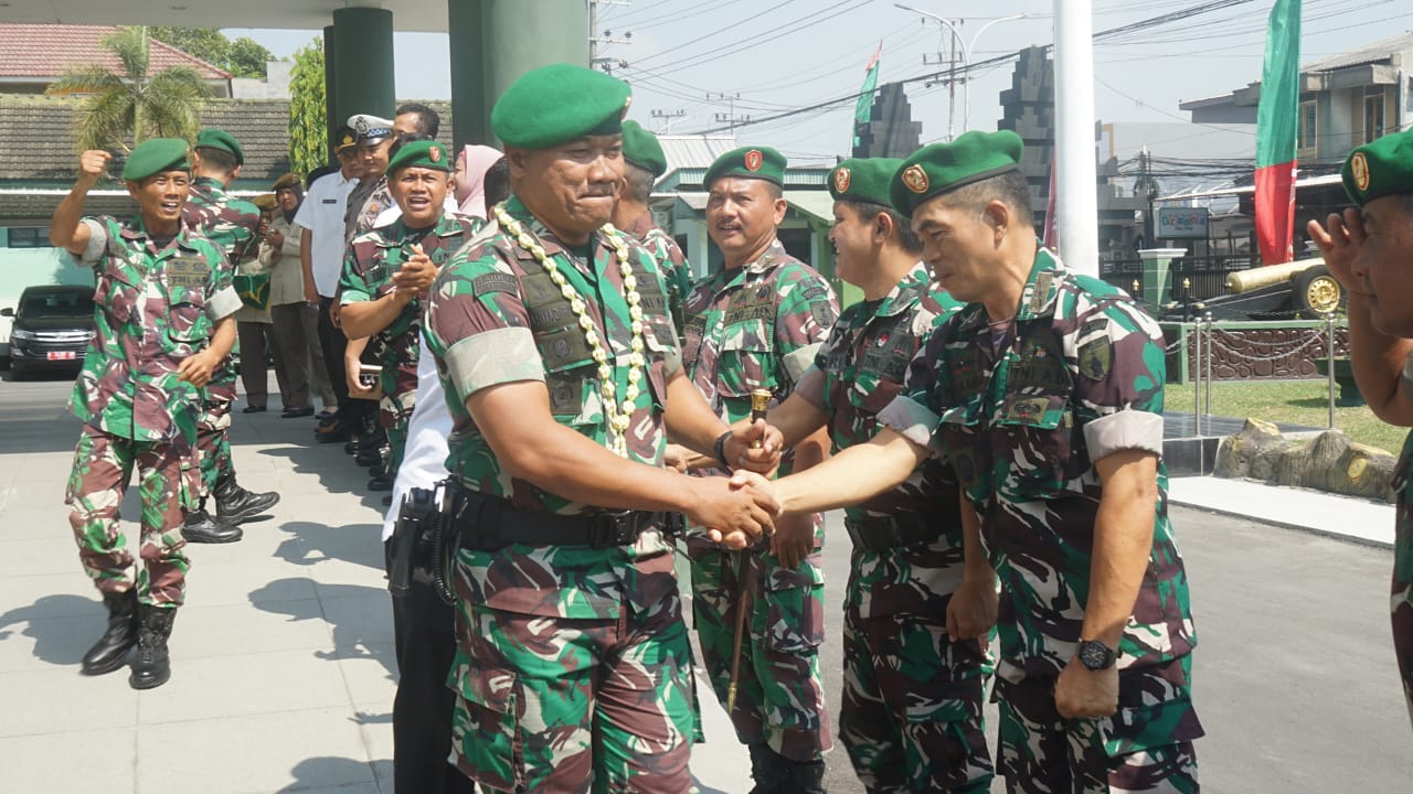 Terlihat berjajar penuh semangat dan gembira, anggota Kodim 0817/Gresik memberikan selamat Kepada Dandim Gresik yang akan berangkat keluar dari Makodim.