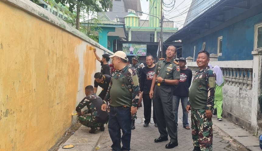 Surabaya |Jatim | Komandan Kodim 0830/Surabaya Utara, Kolonel Inf Dharmawan Setyo Nugroho, S.I.P., meninjau secara langsung kegiatan Karya Bakti Pembersihan dan Pengecatan Sekolahan SMP Dewantara serta Masjid Baitul Huda yang berlangsung di Jl. Simo Kalangan I No.144-148, Kelurahan Simomulyo, Kecamatan Sukomanunggal pada hari ini, Kamis (3/10) dalam rangka memperingati HUT TNI Ke-79. Kegiatan ini bertujuan untuk mempererat hubungan antara TNI dengan masyarakat, serta meningkatkan kualitas lingkungan, terutama di sekitar fasilitas pendidikan dan rumah ibadah.