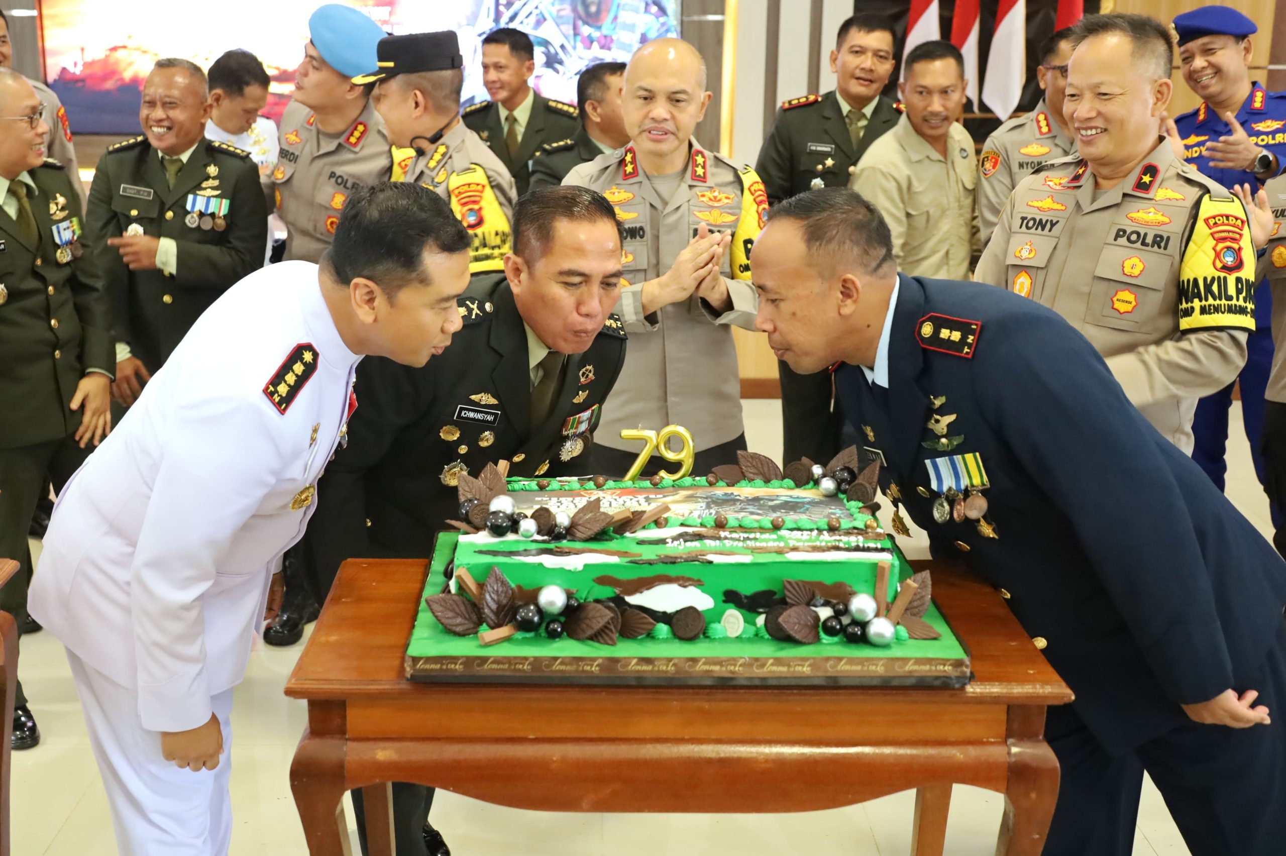 Dalam hal ini Kapolda Irjen Hendro Pandowo bersama Wakapolda serta PJU Polda Babel memberikan surprise dalam bentuk tumpeng dan kue ulang tahun pada (HUT) TNI ke-79 tahun 2024.