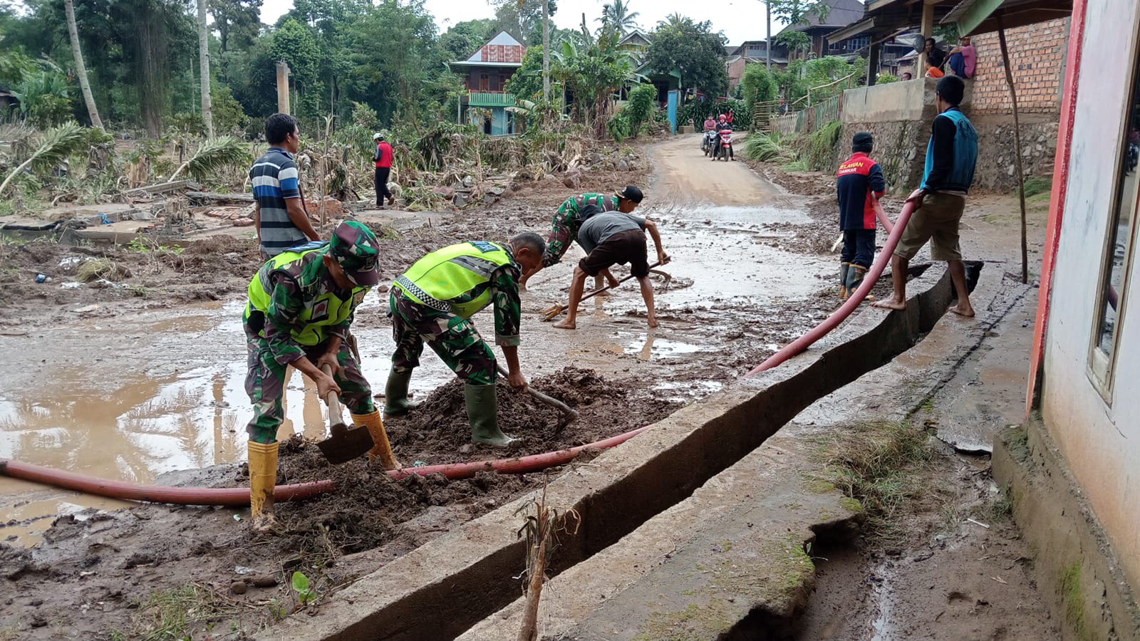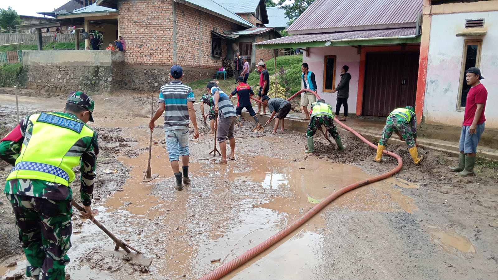 “Babinsa kami sampai saat ini masih terus memantau perkembangan situasi di beberapa Desa yang terdampak banjir serta membantu warga membersihkan material sampah yang berada diseputaran rumah warga”, pungkasnya.