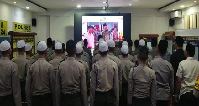 BANYUASIN — Polres Banyuasin melaksanakan kegiatan doa bersama lintas agama yang di selengggarakan oleh Bag Binreligi Rowat Pers SSDM Mabes Polri melalui Zoom Meeting atau virtual di Aula ICC Mapolres Banyuasin, Jum’at (28/6) malam dalam rangka peringatan Hari Bhayangkara ke-78 Tahun 2024.