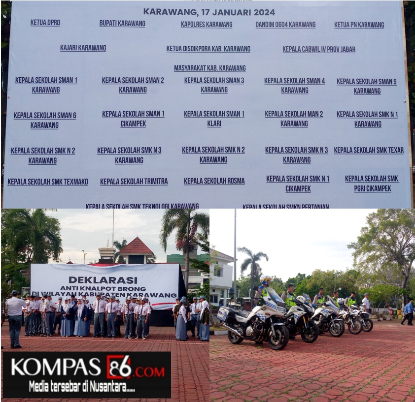 Menggelar Deklarasi Anti Knalpot Brong di halam Pemda Karawang pukul 08. WIB Bagi pemilik kendaraan yang menggunakan knalpot bising di jalan raya, berkemungkinan besar akan terkena tilang dari pengatur rambu-rambu lalu lintas.