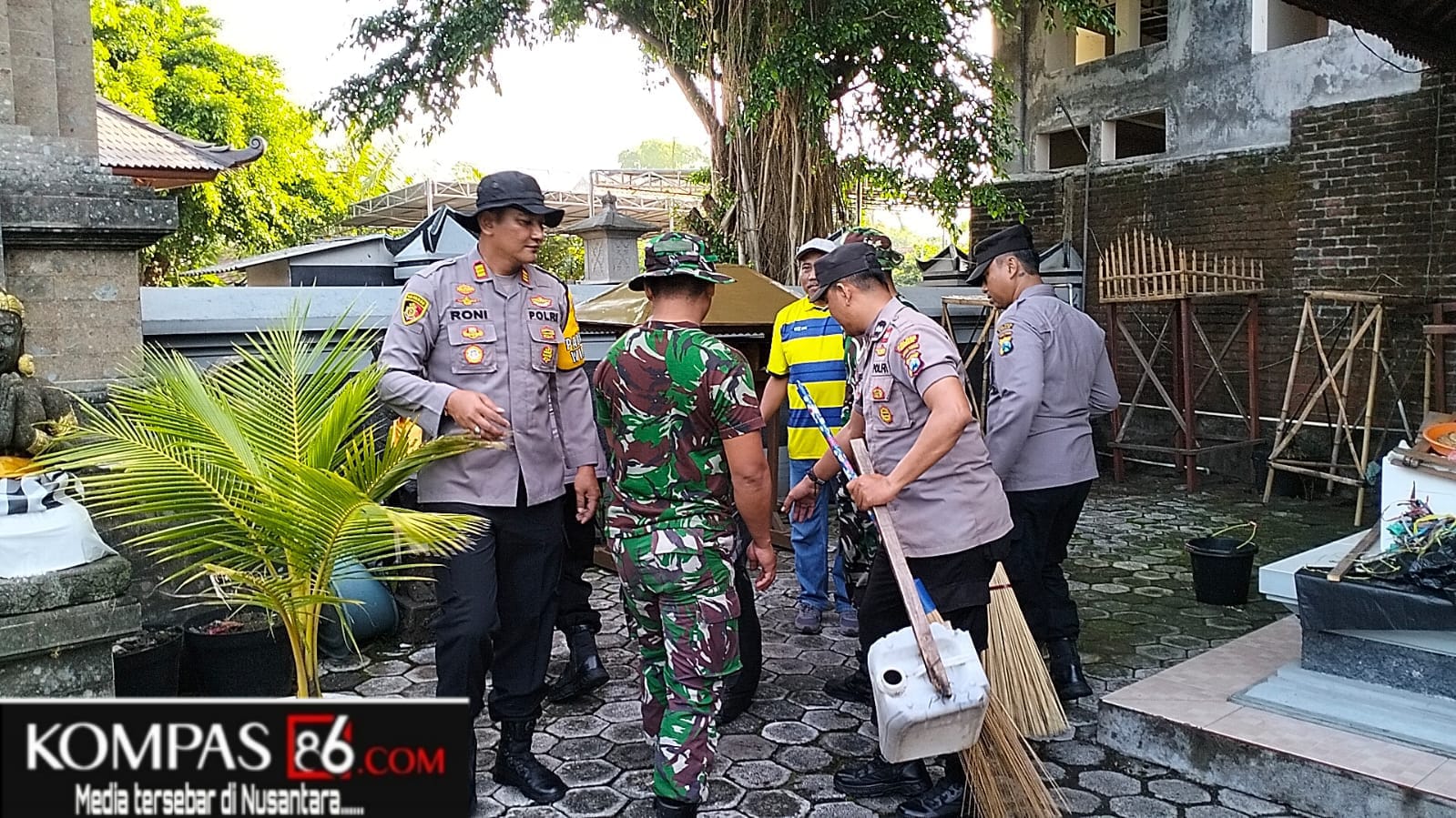Forkopimcam dan Pengurus Tempat ibadah umat Hindu beserta sebagian warga Laban Melakukan kegiatan pembersihan tempat Ibadah di Pura ” JAGAD DUMADI” Desa Laban Kecamatan Menganti Kabupaten Gresik Jumat 02/02/2024