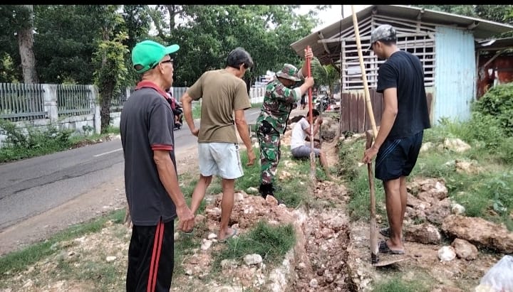 Sebagai bagian dari tugasnya, Babinsa bekerja sama dengan warga setempat untuk membersihkan dan memperbaiki selokan yang tersumbat agar aliran air lancar kembali. Gotong royong ini juga mencerminkan nilai-nilai kebersamaan dan kepedulian sosial, serta meningkatkan kesadaran akan pentingnya menjaga kebersihan lingkungan untuk mencegah bencana alam seperti banjir.