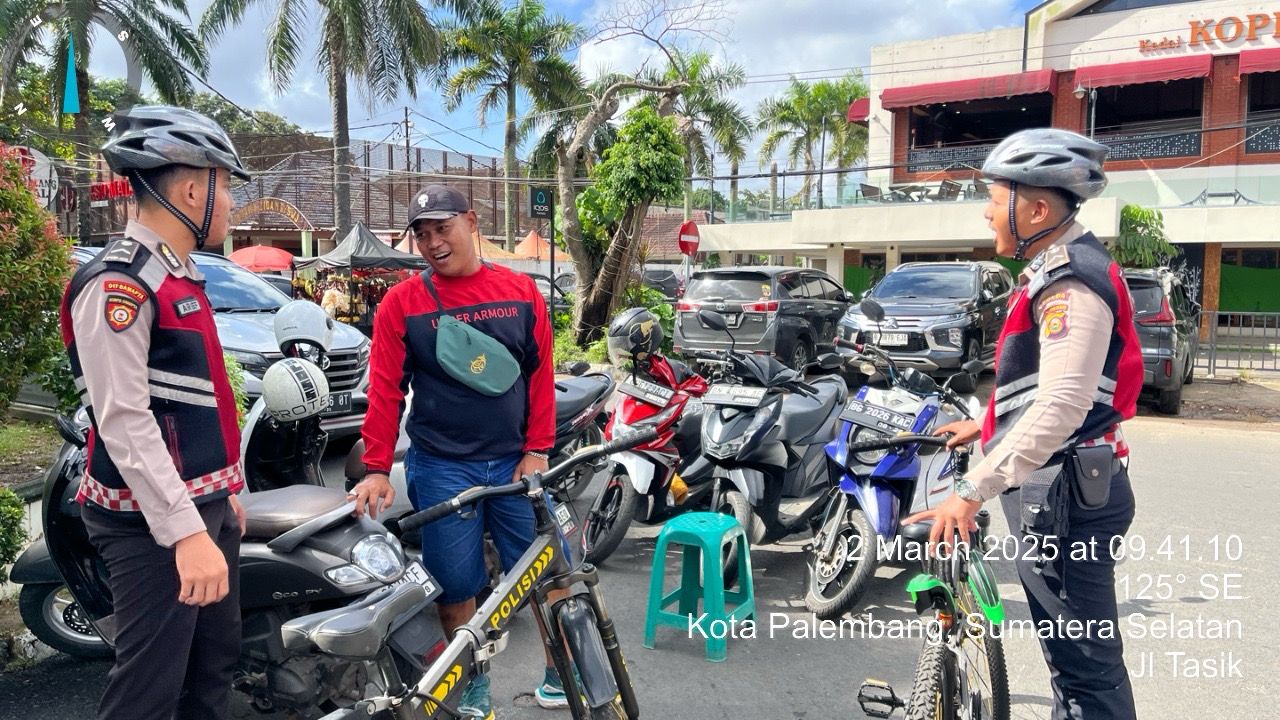 Hari Kedua Ramadhan Patroli Sepeda Ditsamapta Polda Sumsel beri pesan Kamtibmas Area Kambang Iwak Palembang