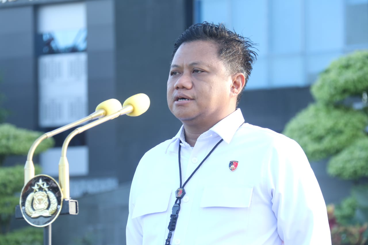 Palembang, – Dirreskrimsus Polda Sumsel Kombes Pol Bagus Suropratomo Oktobrianto,SIK, pimpin Apel pagi dilapangan Mapolda Sumsel Jalan Jenderal Sudirman KM 4 Palembang, Senin 25/08