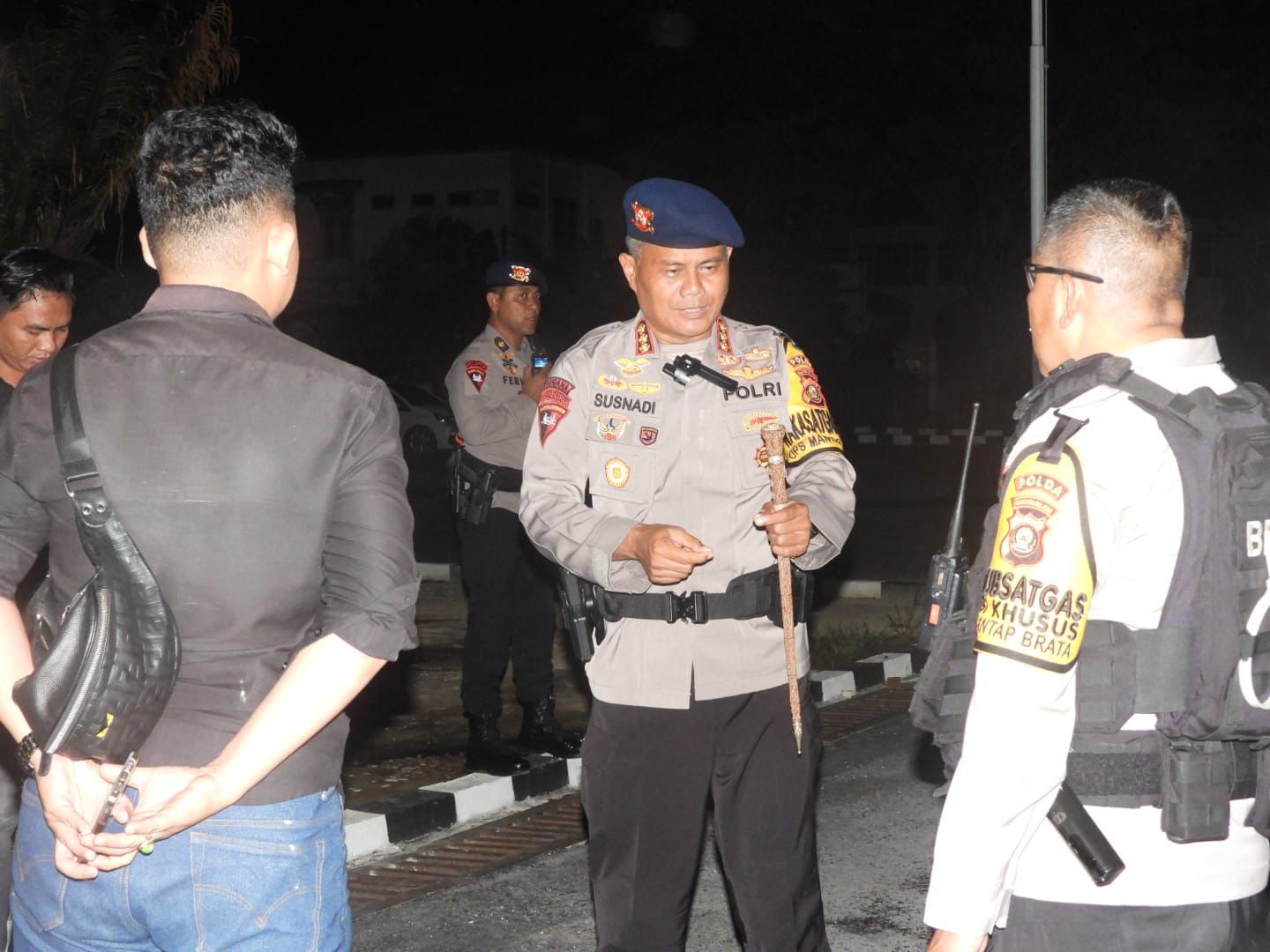 “Malam ini saya pimpin langsung tim patroli Sat Brimob dengan kekuatan 25 personel dan perlengkapan, tim saya bawa menyambangi kantor penyelenggara pemilu dan memastikan para petugas tetap siaga dan situasi aman,” ujar Susnadi.
