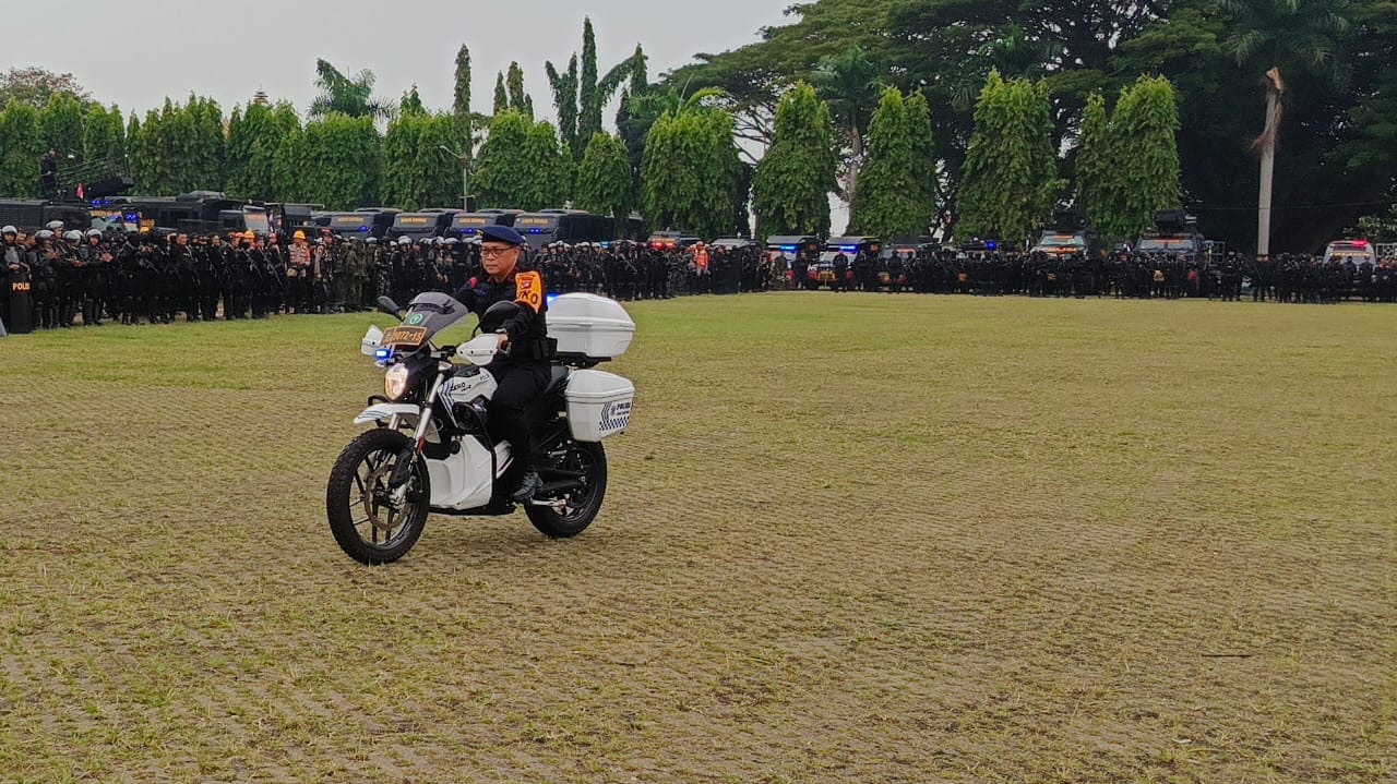 Apel pasukan dan perlengkapan power on hand Kapolda dalam rangka pengamanan Pilkada 2024 serentak di Provinsi Lampung diikuti sebanyak 1.008 pasukan dari berbagai satuan yang disiagakan diantaranya Satbrimob hingga Satlantas Polda Lampung.