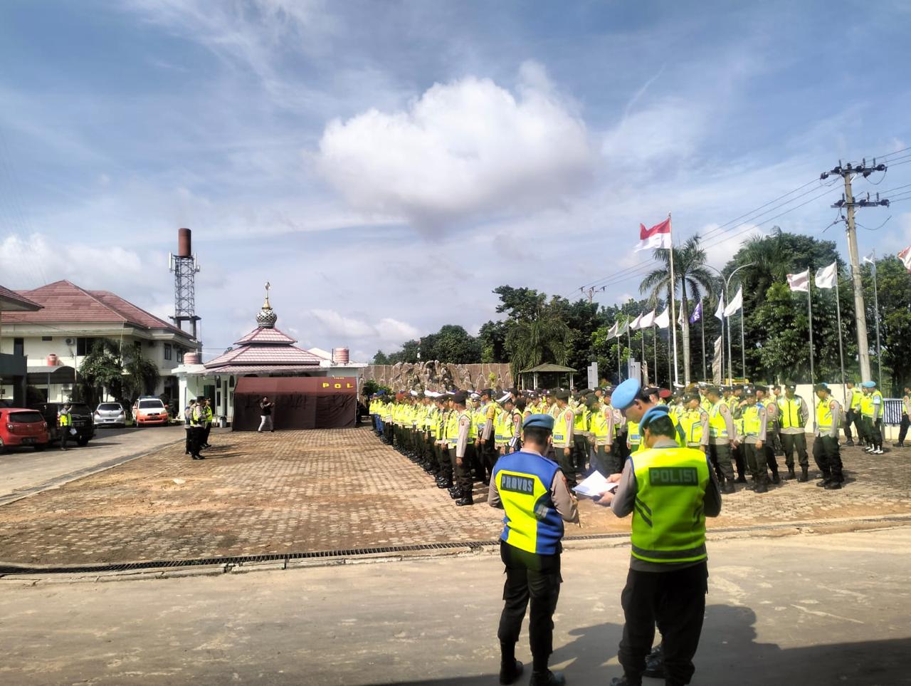 POLRES BANYUASIN – Kapolres Banyuasin AKBP Ferly Rosa Putra SIK Pimpin Apel pengamanan di kawasan Hotel Wyndham dalam rangka Presiden RI Ir. H. Joko Widodo yang akan Kunjungan kerja ke sumatera selatan dan melalui jalur di depan hotel wyndham, Jumat (1/3/24).
