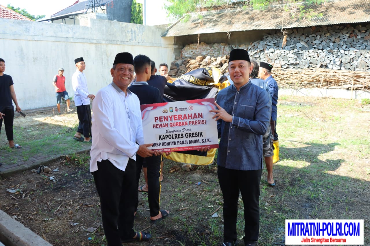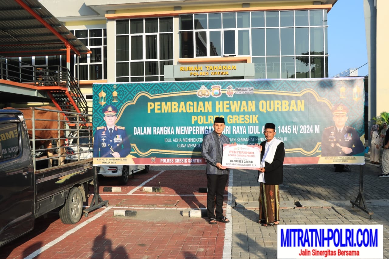 Kapolres Gresik, AKBP Adhitya Panji Anom, memimpin langsung kegiatan penyerahan hewan kurban ini. Ia menuturkan bahwa berkurban merupakan salah satu bentuk ibadah mulia dan momen istimewa untuk berbagi kebahagiaan dengan sesama.Senin(17-06-2024)