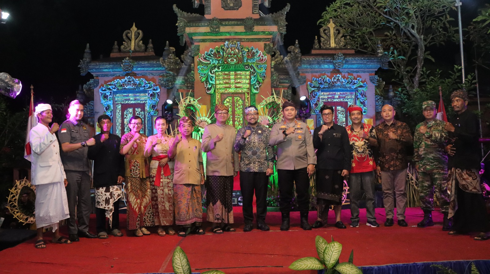 Nganjuk |Jatim | Kapolres Nganjuk AKBP Henri Noveri Santoso, S.H., S.I.K., M.M., bersama unsur Forkopimda Kabupaten Nganjuk menghadiri upacara Dharma Santi sebagai penutup rangkaian Hari Suci Nyepi Tahun Baru Saka 1947/2025 Masehi yang digelar di Mandala Madya Pura Kerta Bhuwana Giri Wilis, Desa Bajulan, Kecamatan Loceret, Kabupaten Nganjuk, Jumat (25/4/2025).