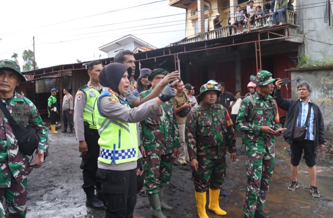 Bukittinggi, KOMPAS86.com – Kapolresta Bukittinggi Kombes Pol. Yessi Kurniati, S.I.K., M.M. dan anggota jajarannya menunjukkan kepedulian yang besar terhadap warga yang terdampak banjir akibat curah hujan tinggi di Gunung Marapi di Simpang Bukik Nagari Bukit Batabuh, Kabupaten Agam. Kejadian tragis ini terjadi pada Jumat, 5 April 2024, Banjir yang cukup besar itu membawa material bekas letusan gunung Marapi Sumatera Barat.