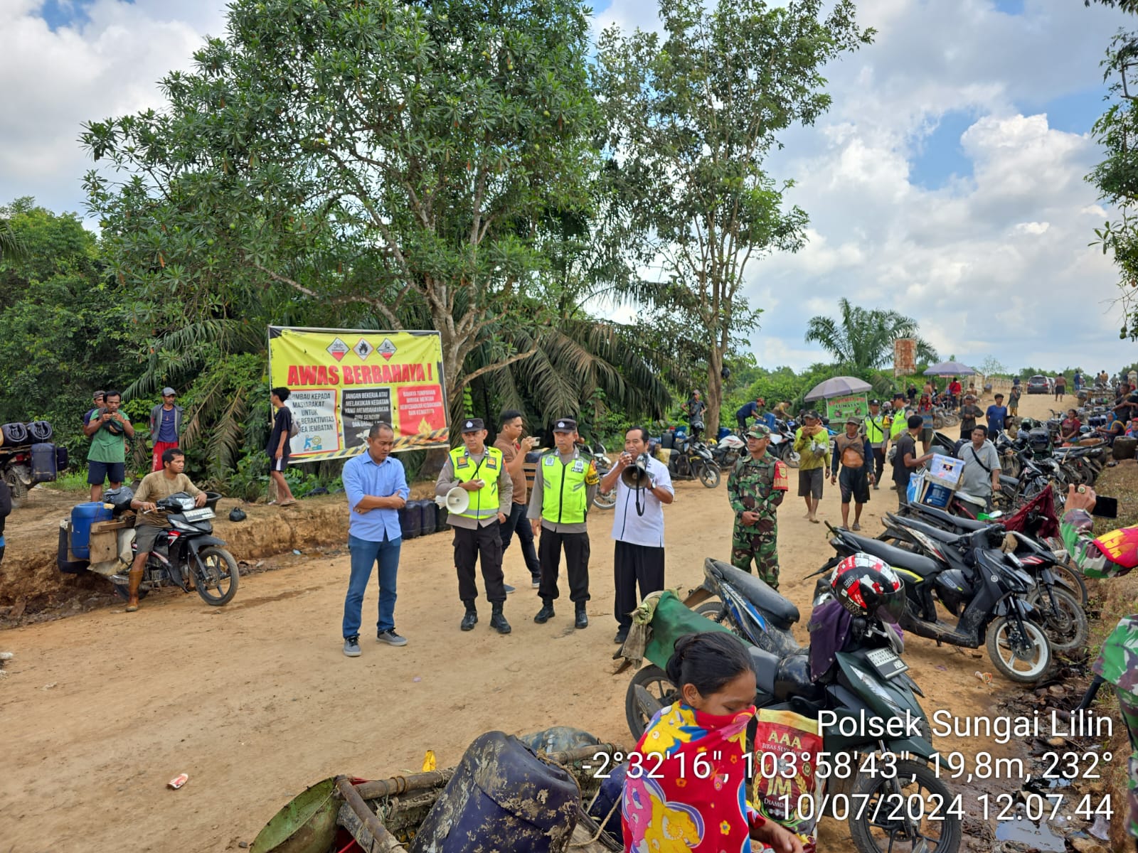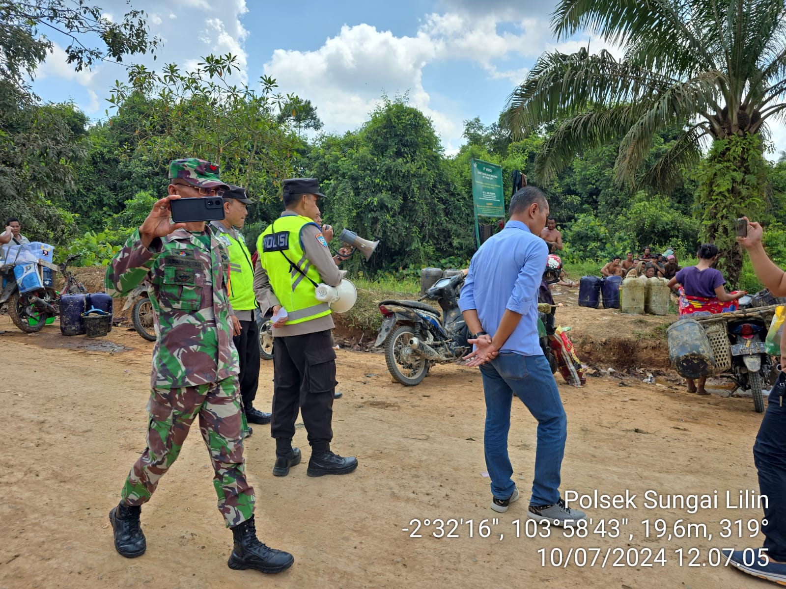 Untuk mencegah terjadinya kebakaran dari aktivitas masyarakat tersebut pada hari Selasa (09/07/2024) Polsek Sungai lilin bersama-sama Forkompimcam (forum komunikasi pimpinan kecamatan) melakukan pelarangan dan himbauan kepada masyarakat yang masih melakukan aktivitas pengumpulan minyak yang tumpah di sungai dawas bawah jembatan PT. Hondoli Tanjung Dalam Estate Desa Sri gunung Kecamatan Sungai Lilin agar tidak lagi melakukan pengumpulan minyak yang tumpah di sungai tersebut karena sangat berbahaya.