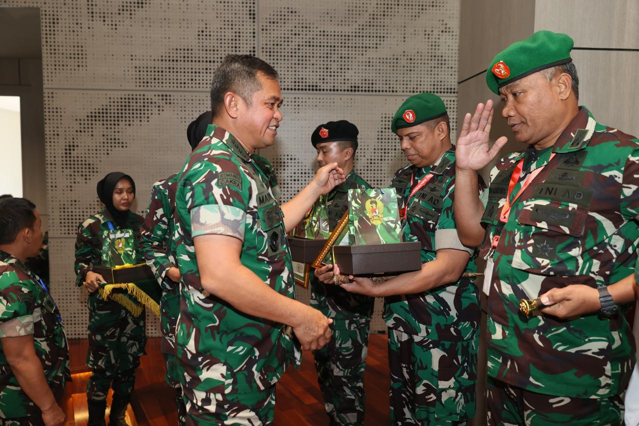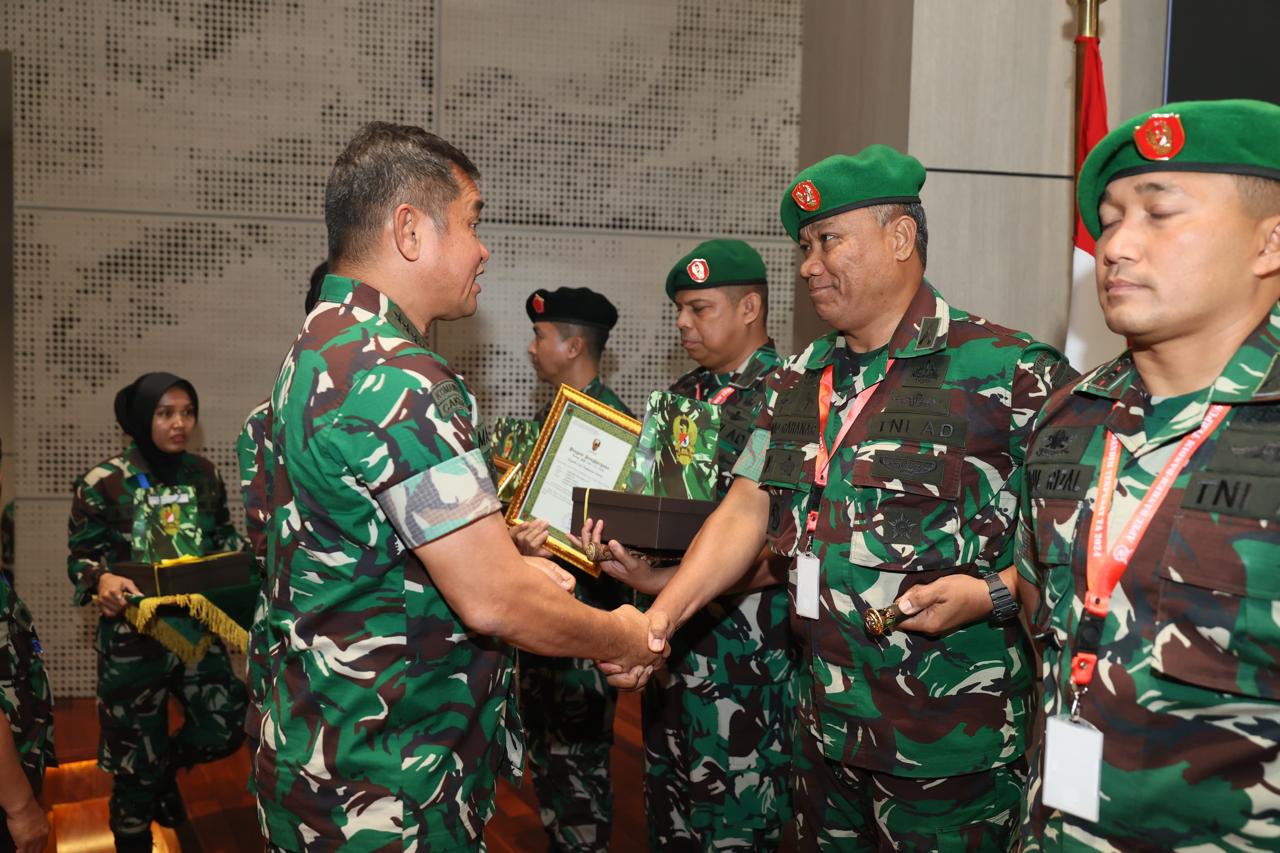 Jakarta | Kepala Staf Angkatan Darat (KSAD) Jenderal TNI Maruli Simanjuntak, M.Sc., secara resmi memberikan piagam penghargaan kepada prajurit yang berprestasi di bidang Teritorial. Dalam rangkaian kegiatan Apel Danrem dan Dandim Terpusat Tahun Anggaran 2024 yang dilaksanakan di Gedung Mandiri University, Wijaya Kusuma, Jakarta Barat. Jumat (11/10/2024)