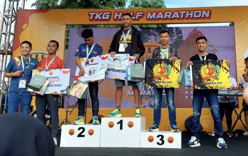 Prajurit Yonif 143/TWEJ Borong Juara Lomba Lari pada Event TKG HALF MARATHON 21K, 10K dan 5K yang dilaksanakan di lapangan parkir Mall Boemi Kedaton, Kota Bandar Lampung.