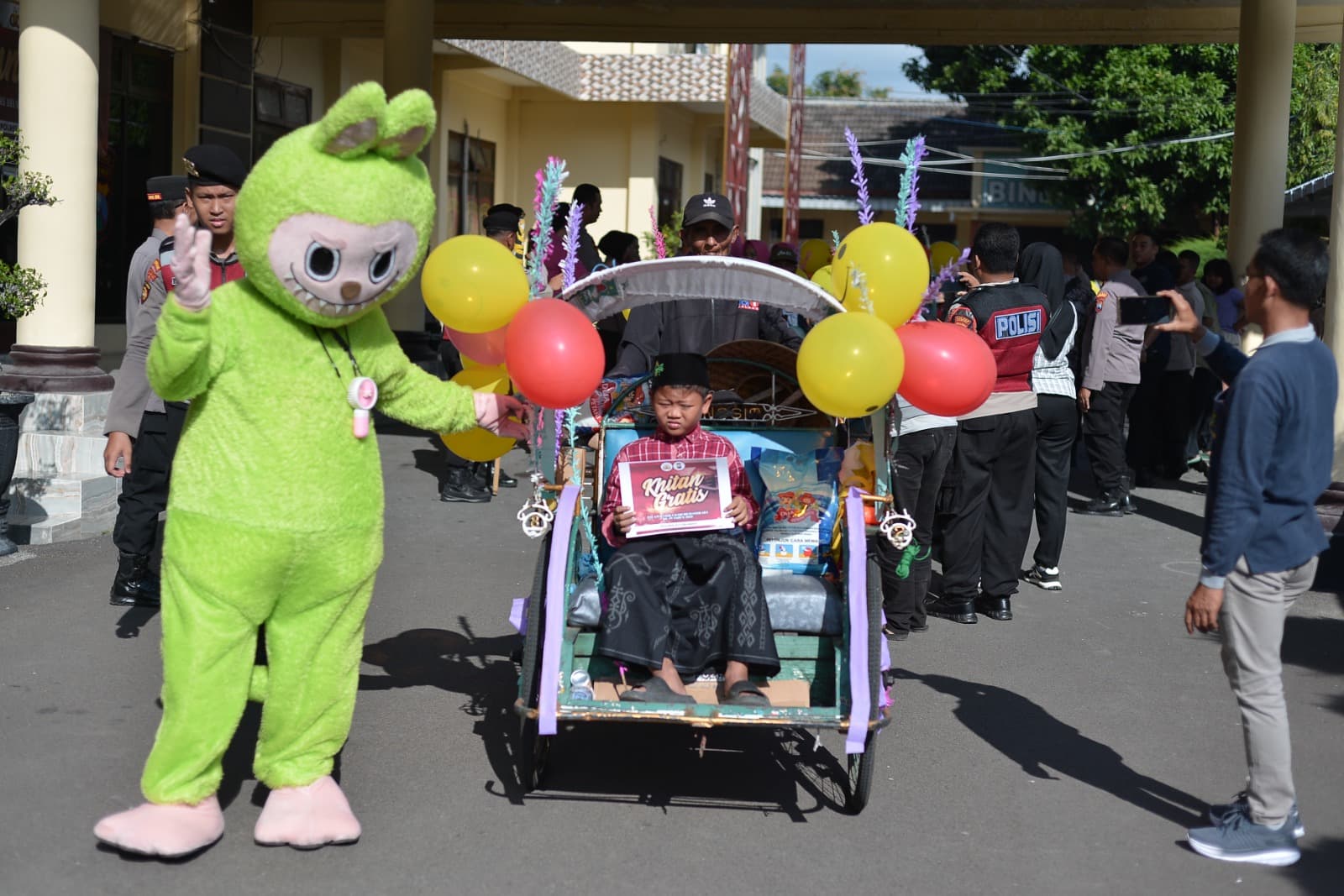 Khitan gratis bagi anak yatim dan piatu sebagai wujud syukur menyongsong Hari Bhayangkara ke-79 ini, lanjut Kapolres Rezi, dilaksanakan di Gedung Bhayangkara Polres Situbondo Polda Jatim.