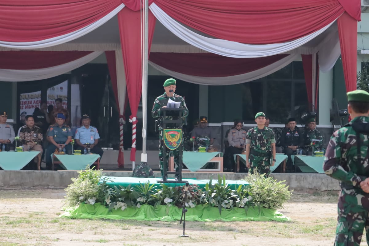 Harapan setiap potensi ancaman yang dapat mengganggu pelaksanaan Pilkada tentunya agar bertindak cepat melaporkan segera apabila melihat hal-hal yang terindikasi untuk mengganggu terlaksananya pelaksanaan Pilkada kemudian yang kelima Humanis masyarakat dan sikap yang manis Ingatlah bahwa kita hadir untuk melindungi dan melayani mereka Salah satu misi TNI yang relevan dan tugas kita kali ini seperti yang sudah dijelaskan tadi adalah mendukung kebijakan pemerintah dalam menciptakan stabilitas nasional dalam konteks bangunan Pilkada antara TNI Polri dan masyarakat sangat krusial untuk menciptakan lingkungan yang aman dan kondusif sinergitas ini dapat terwujud melalui koordinasi yang efektif yaitu meningkatkan komunikasi dan koordinasi antara TNI.,”tutupnya