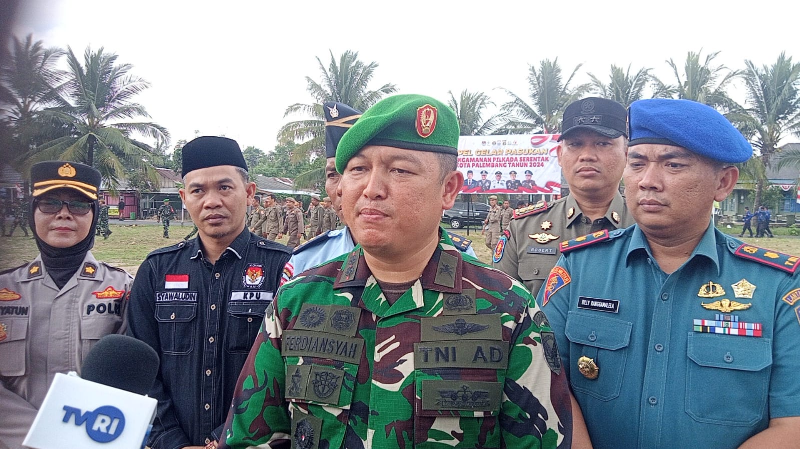 Dandim 0418 Palembang, Letkol Kav Ferdiansyah,S,Sos dalam sambutanya mengatakan Pengaman Pelaksanaan Pilkada serentak merupakan wujud dari demokrasi di negara kita tercinta dalam pelaksanaan tugas ini kita harus senantiasa berpegang teguh khususnya jajaran TNI memegang visi dan misi yaitu visinya menjadi kekuatan militer yang profesional yang siap dan mampu menjamin kedaulatan negara mempertahankan keutuhan wilayah NKRI dan melindungi segenap bangsa Indonesia dan segala ancaman baik dari dalam dan maupun dari luar.