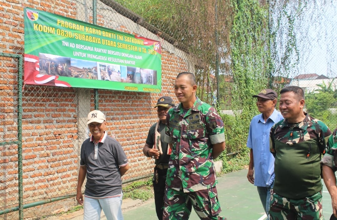 Surabaya |Jatim | Dalam rangka pelaksanaan Program Karya Bakti TNI Satkowil Semester II TA. 2024 yang mengusung tema “TNI AD Bersama Rakyat Bersatu Dengan Alam Untuk Mengatasi Kesulitan Rakyat,” Kodim 0830/Surabaya Utara menyelenggarakan kegiatan Karya Bakti yang melibatkan TNI dan masyarakat. Acara berlangsung di Balai RT 08 RW 08, Kelurahan Manukan Kulon, Kecamatan Tandes, dan bertujuan untuk memperkuat hubungan TNI dengan masyarakat melalui renovasi infrastruktur yang sangat dibutuhkan warga setempat, Rabu (13/11).