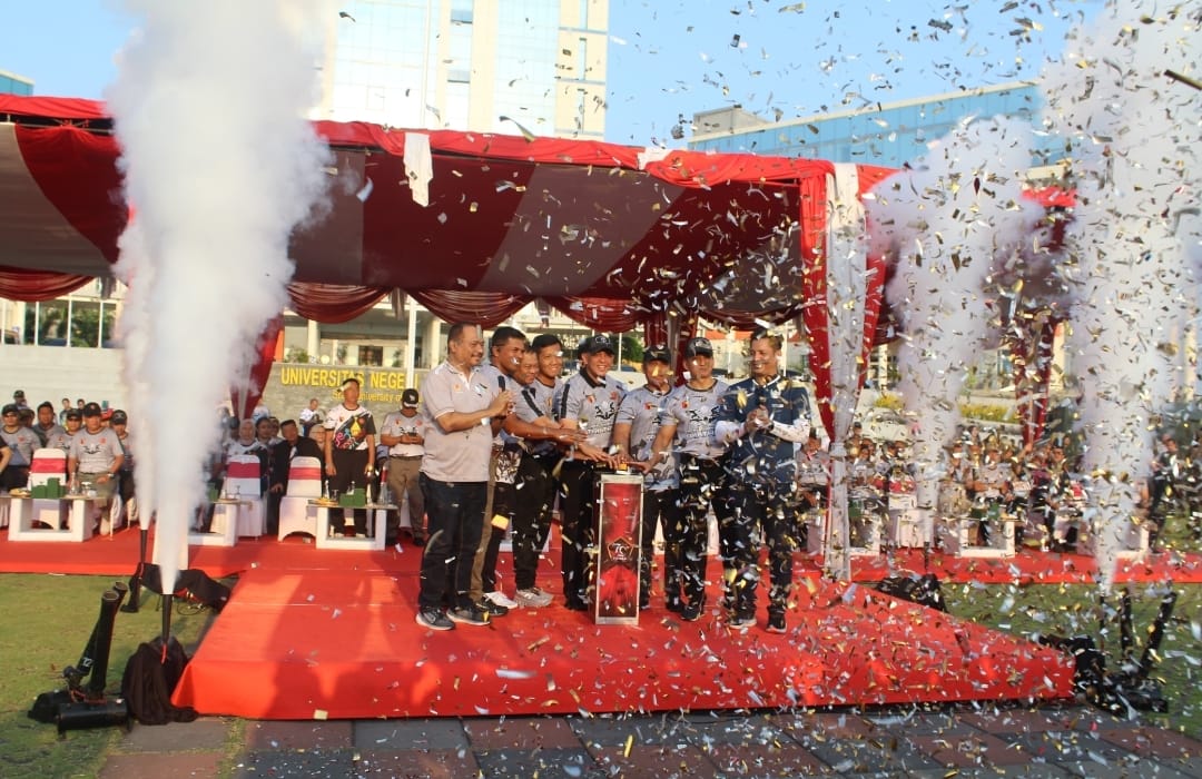 Surabaya |Jatim | Dalam rangka memeriahkan Hari Ulang Tahun (HUT) ke-79 Tentara Nasional Indonesia (TNI), Komandan Kodim 0830/Surabaya Utara, Kolonel Inf Dharmawan Setyo Nugroho, S.I.P., menghadiri upacara pembukaan Internasional Triathlon Open Tournament Piala Panglima TNI yang digelar di Lapangan Rektorat Universitas Negeri Surabaya (Unesa), Lidah Wetan, Kecamatan Lakarsantri, Minggu (27/10).