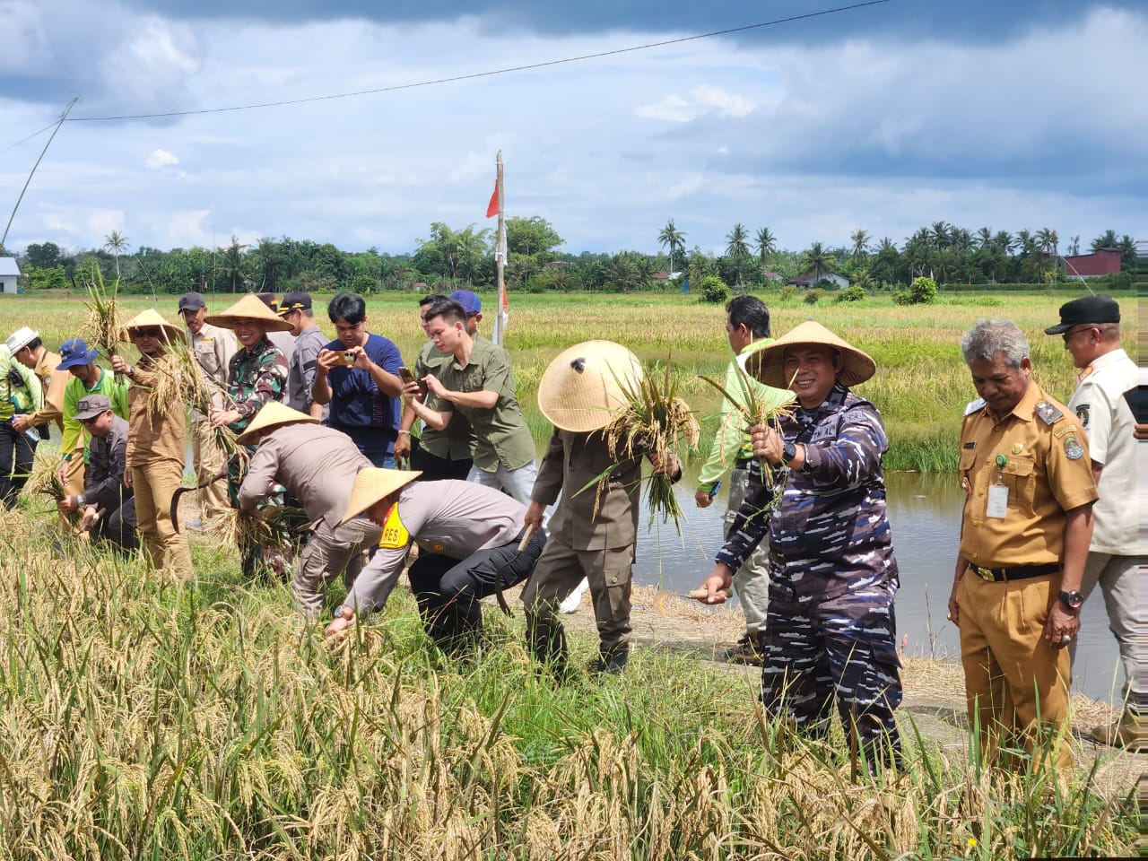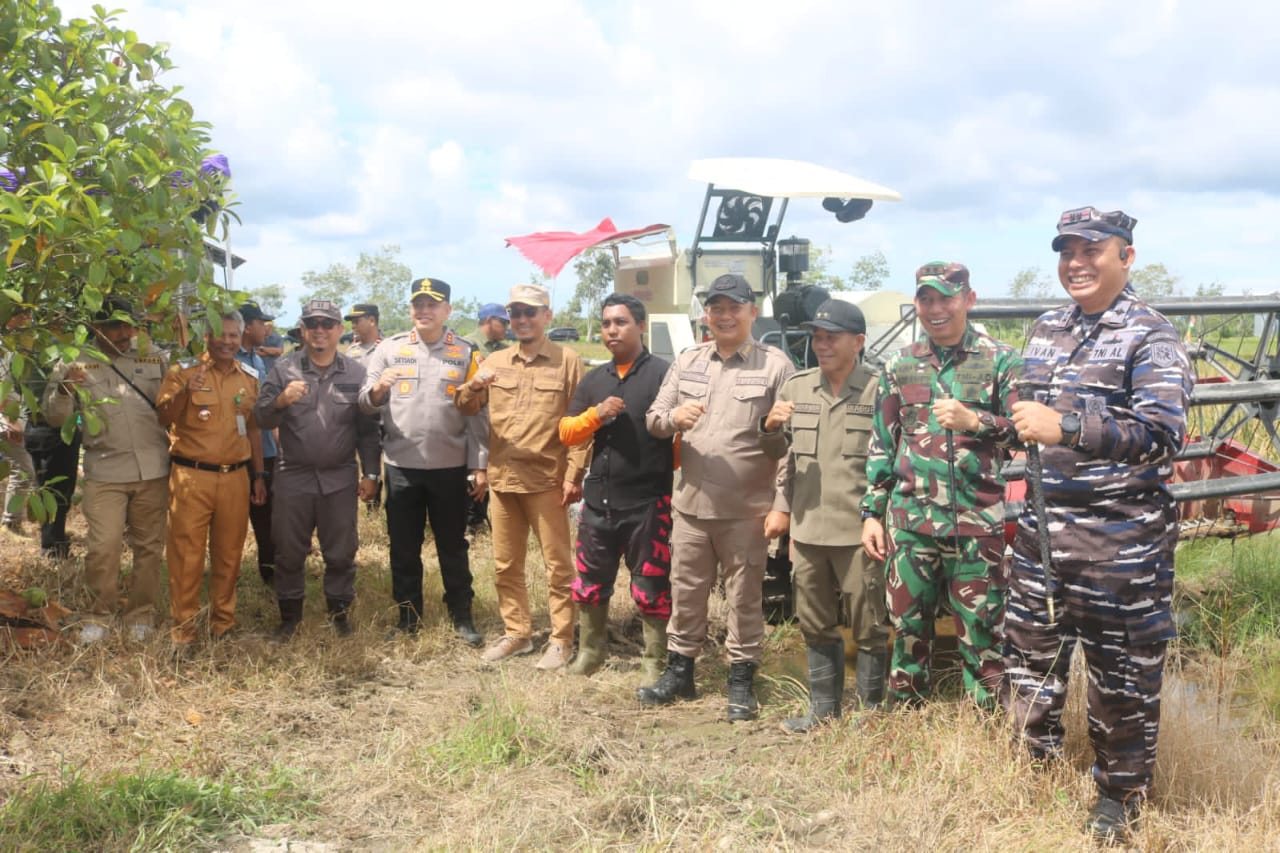 Komandan Lanal Ketapang Beserta OPD Kabupaten Ketapang Laksanakan Panen Raya Padi Serentak 14 Provinsi Di Kabupaten Ketapang
