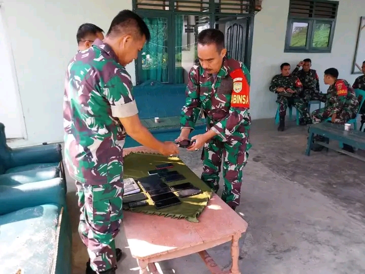 Koramil 0412/09/ABS/kodim 0412 Lu.melakukan pengecekan telepon milik jajaran anggota guna antisipasi marak nya judi online