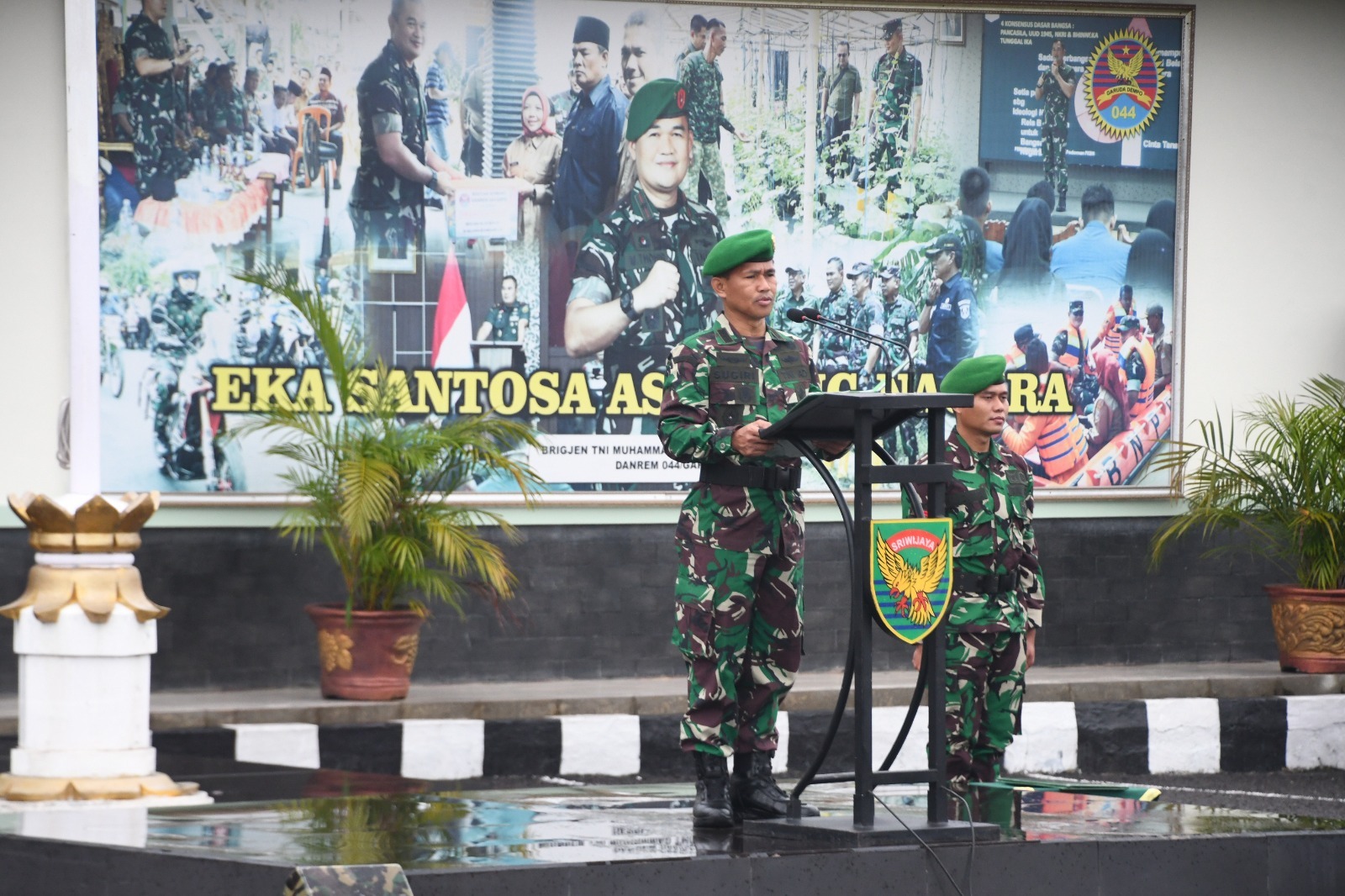 Pada kesempatan tersebut, Kasi Perencanaan Korem 044/Gapo Kolonel Arh Sugiri membacakan amanat Danrem 044/Gapo Brigjen TNI Muhammad Thohir, S.Sos., M.M saat bertindak selaku pimpinan apel mengatakan pada sambutannya, Senin (23/12/2024).