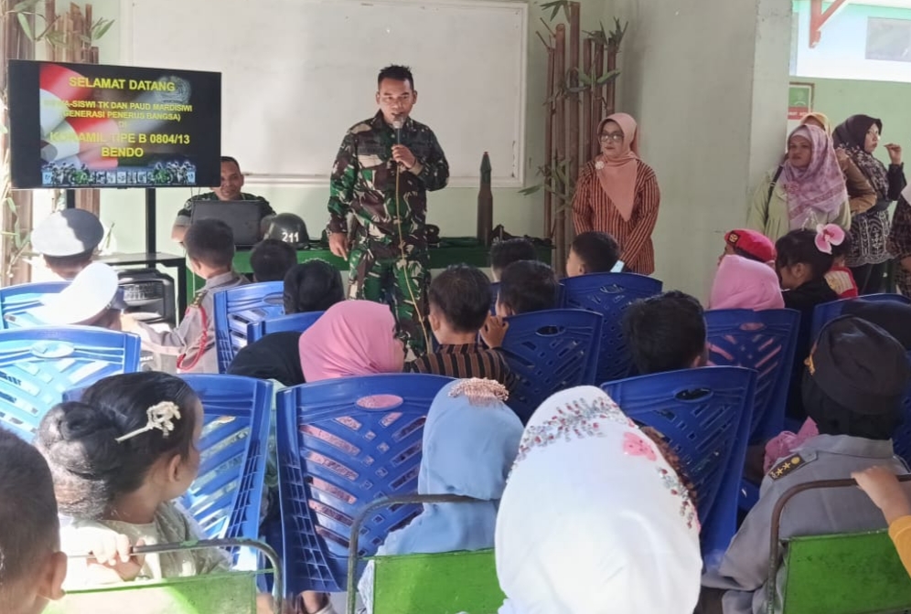 “Sengaja kami ajak anak-anak didik kami berkunjung ke Koramil Bendo supaya dapat mengenal dan berinteraksi langsung dengan bapak-bapak TNI,” ujar Ernawati, Kepala Sekolah TK Mardisiwi di lokasi.