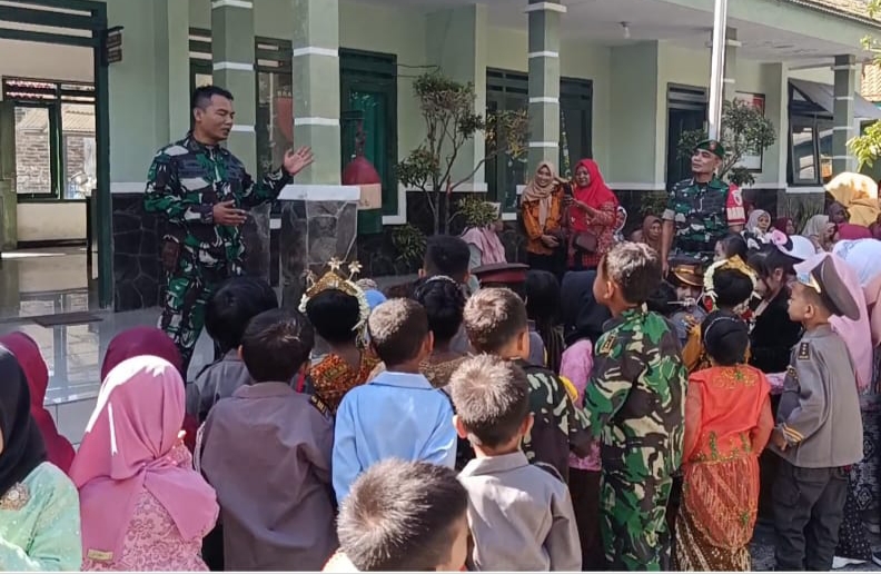 “Tadi kita sampaikan kepada anak-anak tentang apa itu TNI dan apa tugas-tugasnya. Termasuk juga macam-macam atribut yang dikenakan,” kata personel Koramil 0804/13 Bendo, Pelda Roni selaku instruktur.