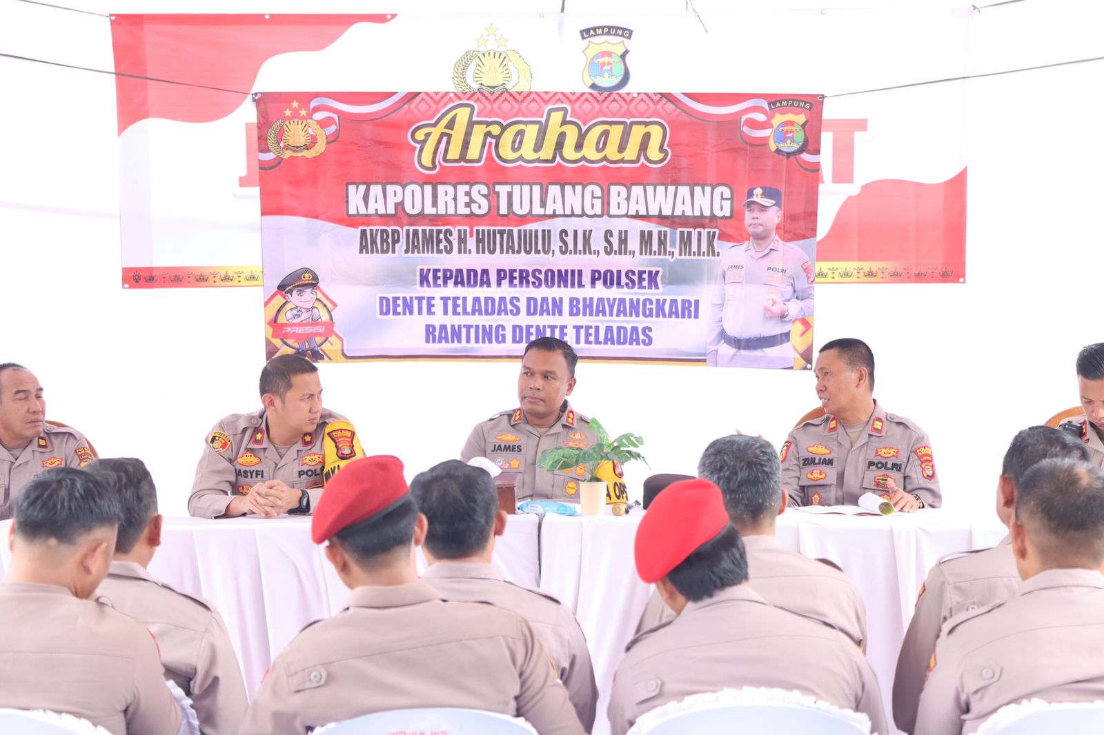 “Semenjak saya dilantik menjadi Kapolres Tulang Bawang oleh Kapolda Lampung pada awal bulan Januari 2024 lalu,baru kali ini bisa melaksanakan kunker ke Polsek jajaran.Hal ini disebabkan karena kesibukan menghadapi Pemilu 2024,”kata AKBP James.