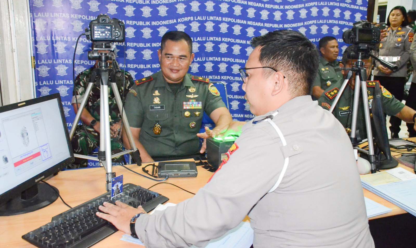 Danrem 044/Gapo Brigjen TNI Muhammad Thohir, S.Sos., M.M mendampingi Pangdam II/Swj melakukan perpanjangan SIM (Surat Ijin Mengemudi) disela-sela kunjungan silaturahmi di Mapolrestabes Palembang Jl. Gub. H. Bastari 8 Ulu Palembang, Senin (4/3/2024).