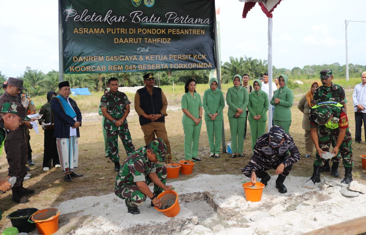 Sementara itu, usai mengikuti Danrem 045/Gaya menyerahkan bantuan paket sembako dan pemberian tali asih untuk anak asuh stunting serta penyerahan bantuan bahan material dan peletakan batu pertama pembangunan asrama putri daarut tahfiz.