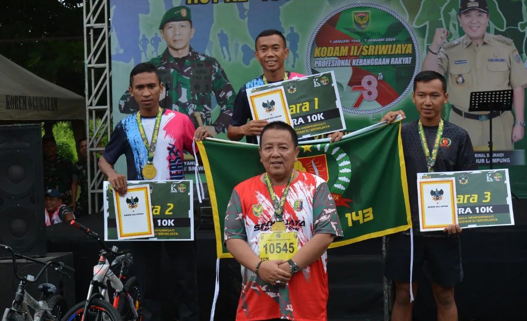 “Adapun pelari dari Yonif 143/TWEJ yang merebut juara 1, 2 dan 3 yaitu Pratu Asep Saefudin dengan finish di urutan pertama, diikuti Pratu Adi Subianto, kemudian Pratu Budi di urutan ketiga.” Tambahnya