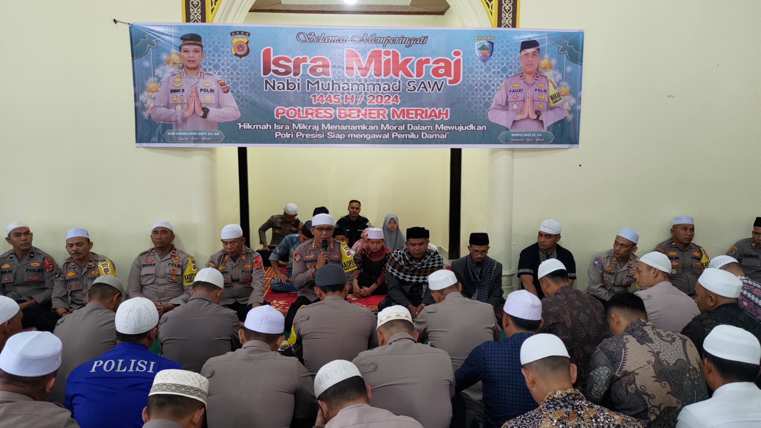 Dalam sambutannya, Kapolres Bener Meriah menekankan pentingnya meningkatkan keimanan kepada Allah SWT dan kecintaan kepada Rasulullah SAW melalui peringatan Isra Mi’raj.