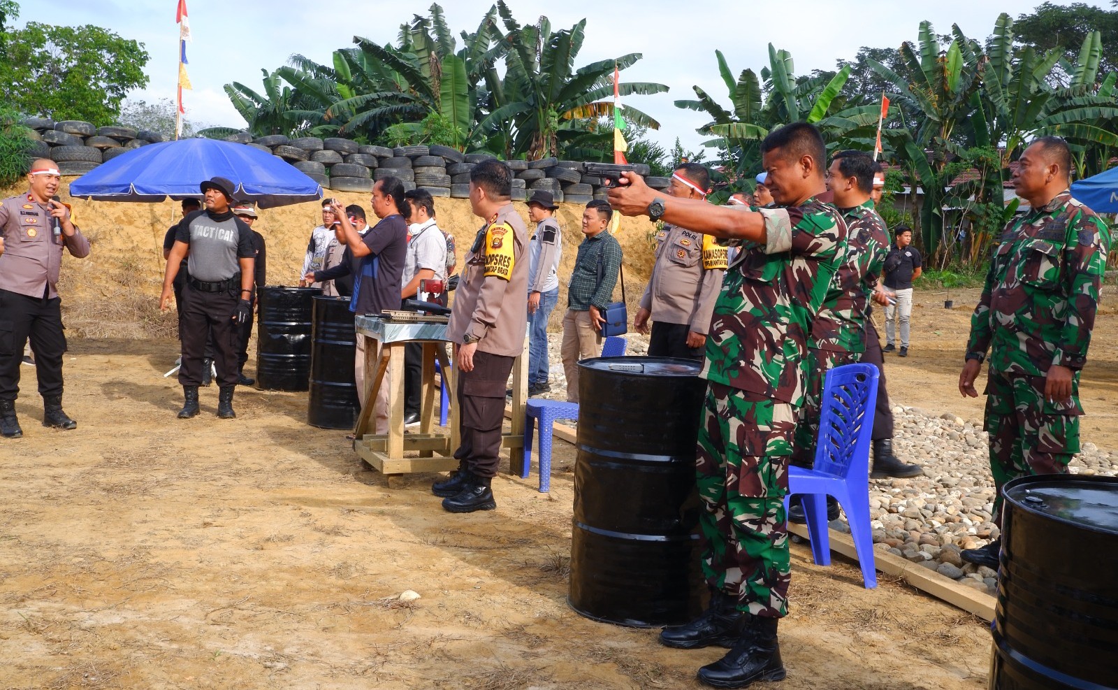 Dalam rangka peringati HUT Bhayangkara ke-78, Dandim 0420/Sarko Letkol Inf Suyono S.Sos bersama Forkopimda melaksanakan kegiatan perlombaan menembak yang diselenggarakan oleh Polres Merangin bertempat di Lapangan Tembak Polsek Bangko Desa Langling Kec. Bangko Kab. Merangin. Kamis (27/06/24).