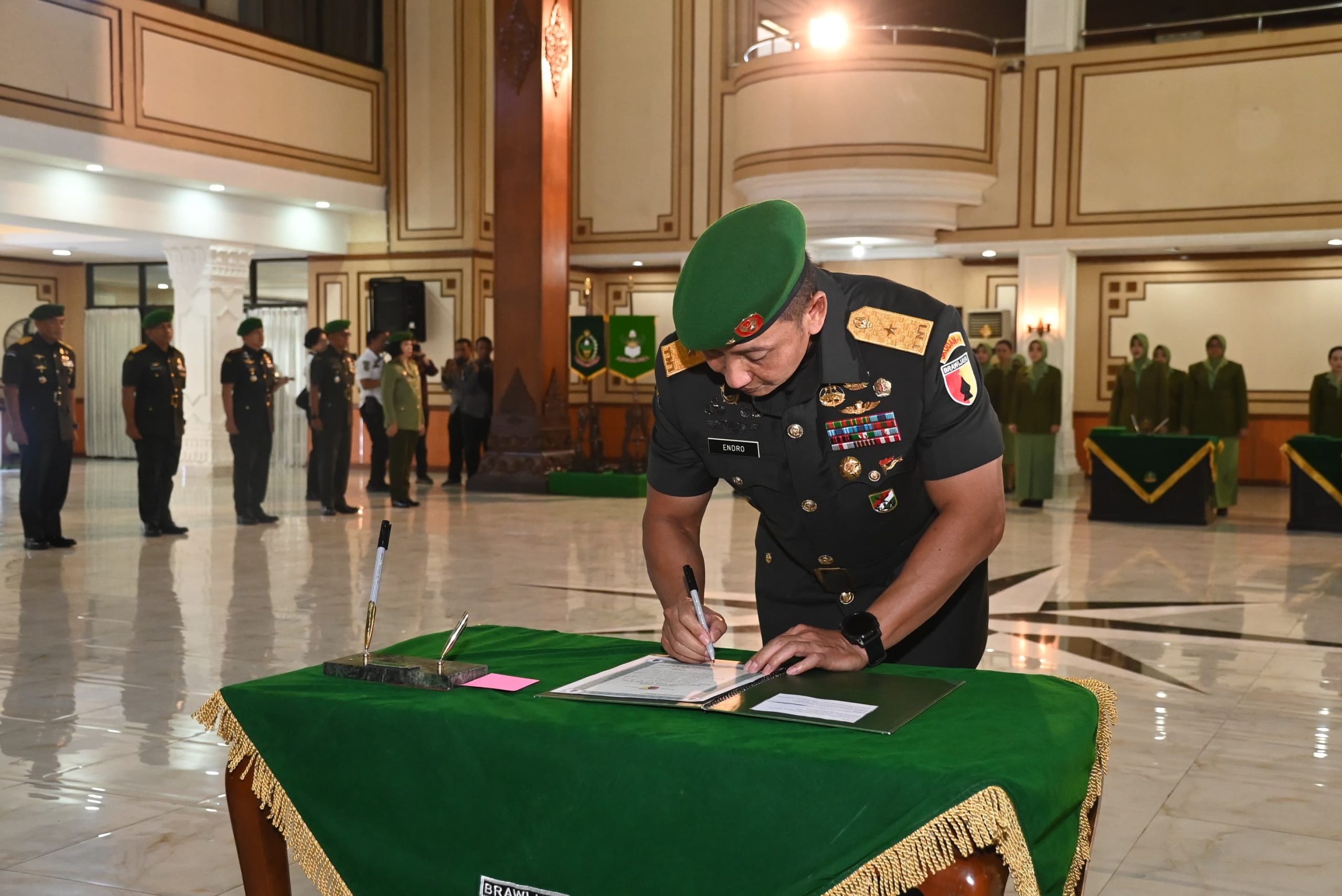 Pejabat yang diserahterimakan, antara lain, Kasdam Brawijaya yang sebelumnya dijabat oleh Brigjen TNI Endro Satoto, resmi digantikan oleh Brigjen TNI Terry Tresna Purnama.