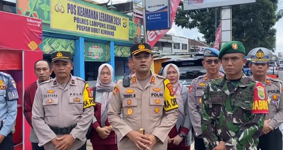 Lampung Utara,Kompas86.Com Kepala Kepolisian Resor (Kapolres) Lampung Utara AKBP Teddy Rachesna, S.H., S.I.K., M.Si. memantau langsung puncak arus balik lebaran 2024 sekaligus memberikan himbauan kepada pemudik, Minggu (14/4/24).