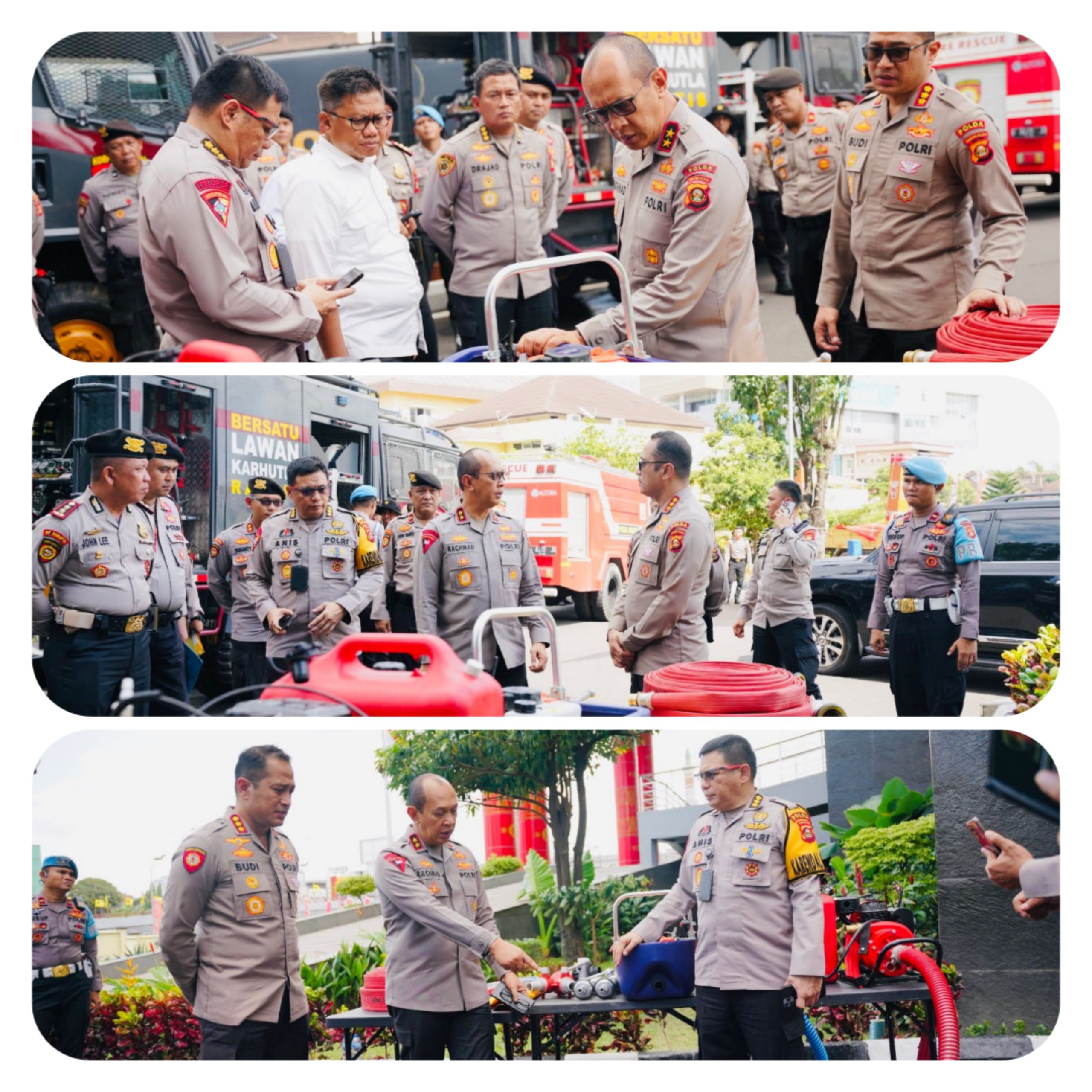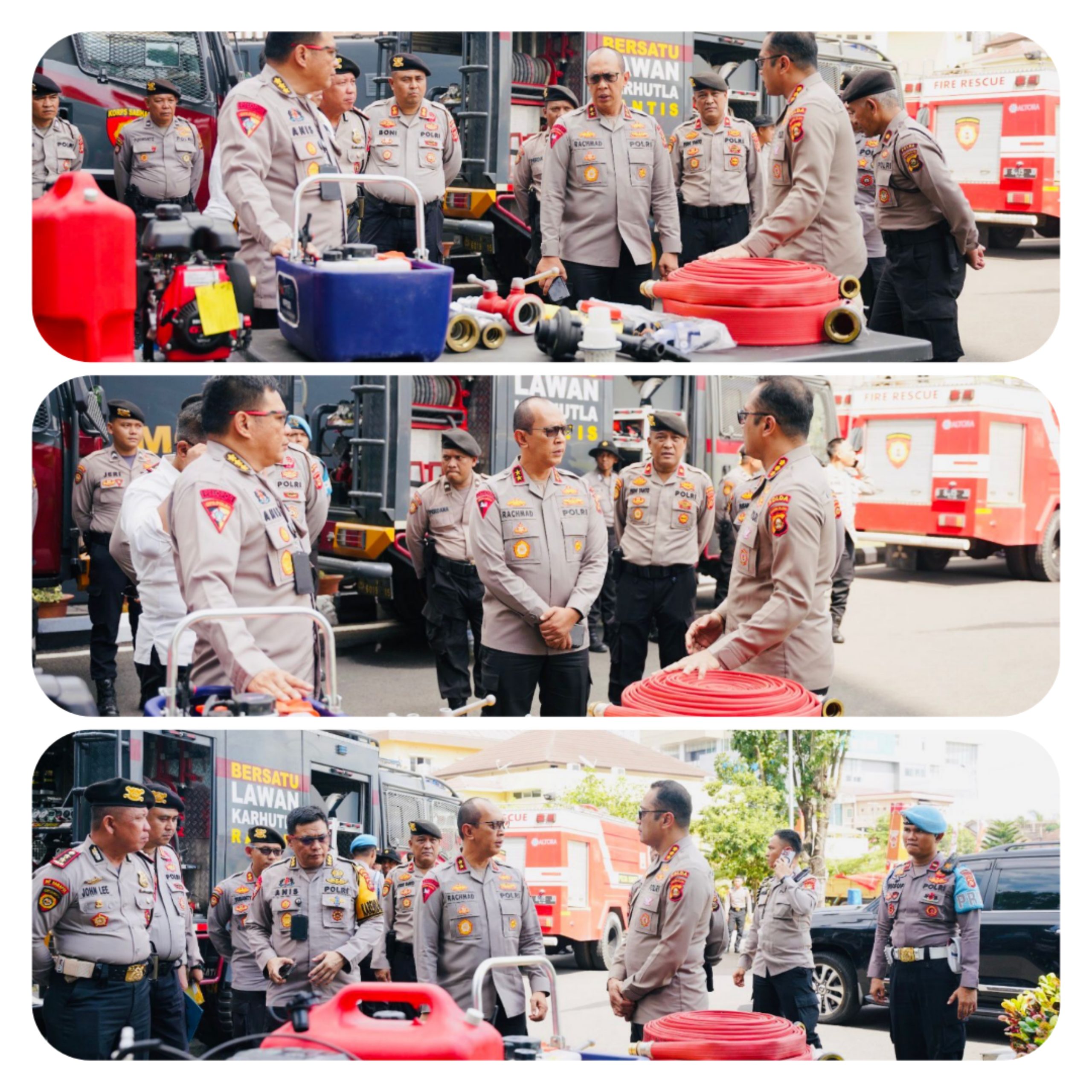 PALEMBANG – Kapolda Sumsel Irjen Pol A Rachmad Wibowo Sik bersama beberapa Pejabat Utamanya melakukan pengecekan perlengkapan peralatan, sarana prasarana yang akan dipergunakan untuk mengantisipasi dalam penanganan kebakaran hutan dan lahan (karhutla).