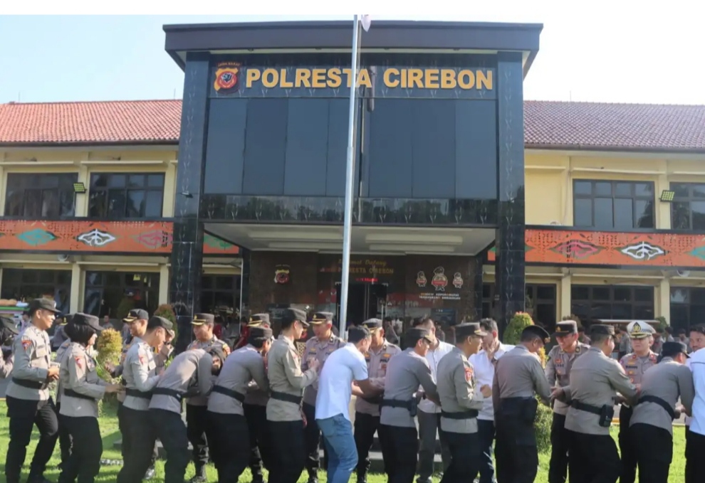 Polresta cirebon.,Pasca pelaksanaan Operasi Ketupat Lodaya 2024 pengamanan libur Hari Raya Idul Fitri 1445 Hijriah, Polresta Cirebon Polda Jabar menggelar acara Halal Bihalal di Halaman Mapolresta Cirebon pada Rabu (17/4/2024) pagi.