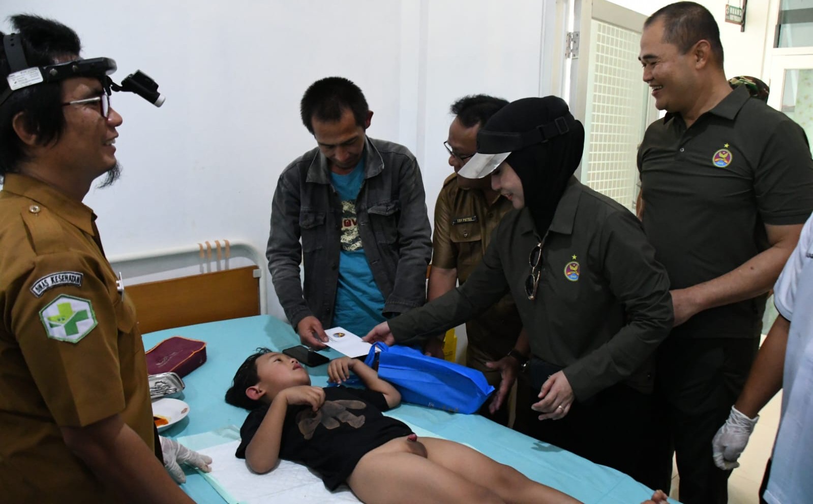Ibu Ketua Persit KCK Koorcab Rem 044 PD II Sriwijaya, Ny. Tina Thohir meninjau kegiatan Bakti Sosial yang diselenggarakan di Puskesmas Banding Agung Kab. Oku Selatan, Senin (22/7/2024).