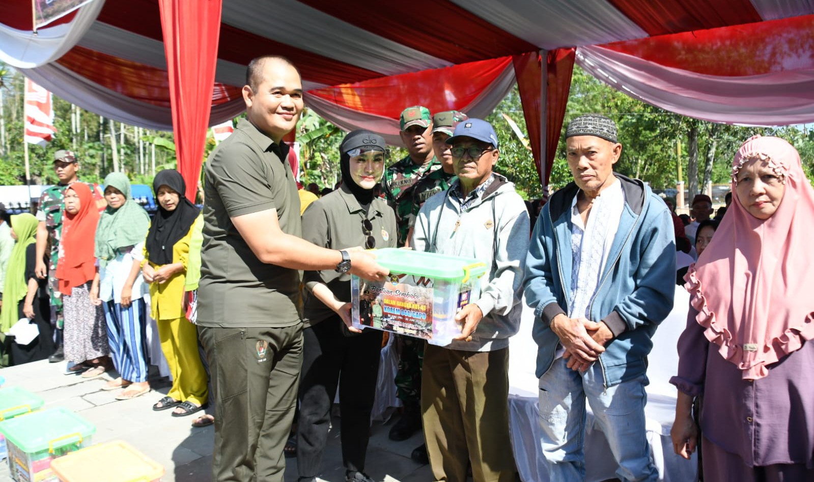 Pada hari puncak HUT ke-43 Korem 044/Gapo yang diselenggarakan di Danau Ranau ini, Ibu Ketua Persit KCK Koorcab Rem 044 meninjau kegiatan Bakti Sosial, pengobatan gratis dan sunatan massal serta pemberian tali asih berupa Sembako kepada masyarakat di Kecamatan Banding Agung Kabupaten Oku Selatan.