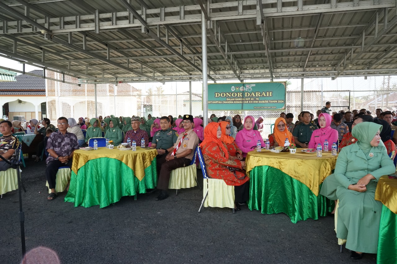 Dalam rangka memperingati HUT Persatuan Istri Tentara (Persit) Kartika Chandra Kirana Ke-78 Tahun 2024, Persit KCK Cabang XIX Dim 0408/BS Koorcab Rem 041/Gamas menggelar kegiatan bakti sosial donor darah, yang bertempat di Makodim 0408/BS Jln. Veteran Padang Kapuk Kec. Kota Manna Kab. Bengkulu Selatan.
