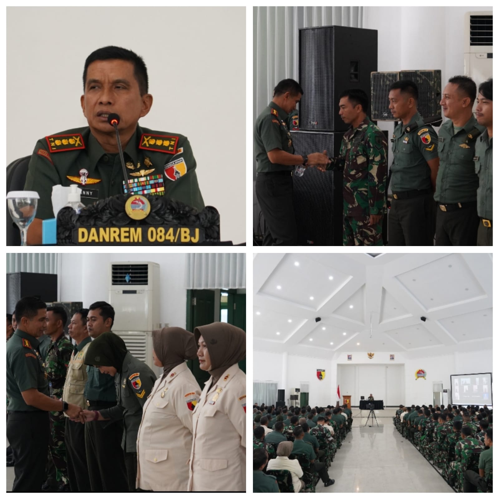 Danrem 084/Bhaskara Jaya juga menyampaikan beberapa pesan penting lainya untuk dipedomani seluruh Prajurit dan PNS dalam melaksanakan tugas sehari-hari antara lain tentang kesehatan, kebersihan pangkalan, pelanggaran dan Netralitas TNI dalam Pilkada Serentak tahun 2024.