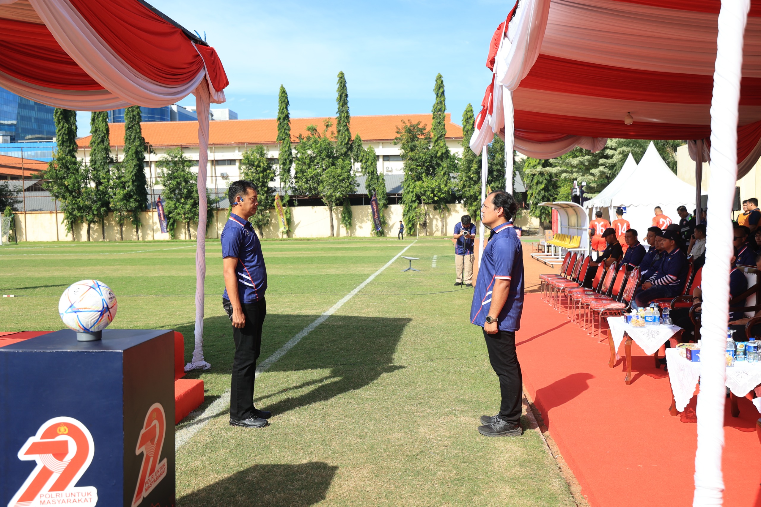 SURABAYA |Jatim| Kepala Kepolisian Daerah Jawa Timur yang di wakili oleh Dirressiber Polda Jatim, Kombes Pol. R. Bagoes Wibisono H.K. S.I.K., M.Si resmi membuka turnamen sepak bola antar Satuan Kerja (Satker) Polda Jatim dan Satuan Wilayah (Say)twil) Jajaran Polda Jatim, Minggu (15/6/2025).