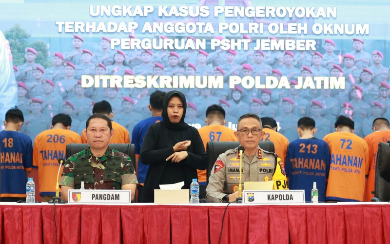 Dalam kesempatan ini, Kapolda Jatim Irjen Pol Imam Sugianto menjelaskan, dalam peristiwa pengeroyokan anggota Polisi yang dilakukan oleh oknum anggota PSHT di Jember, Polisi sebelumnya telah mengamankan sebanyak 22 orang.