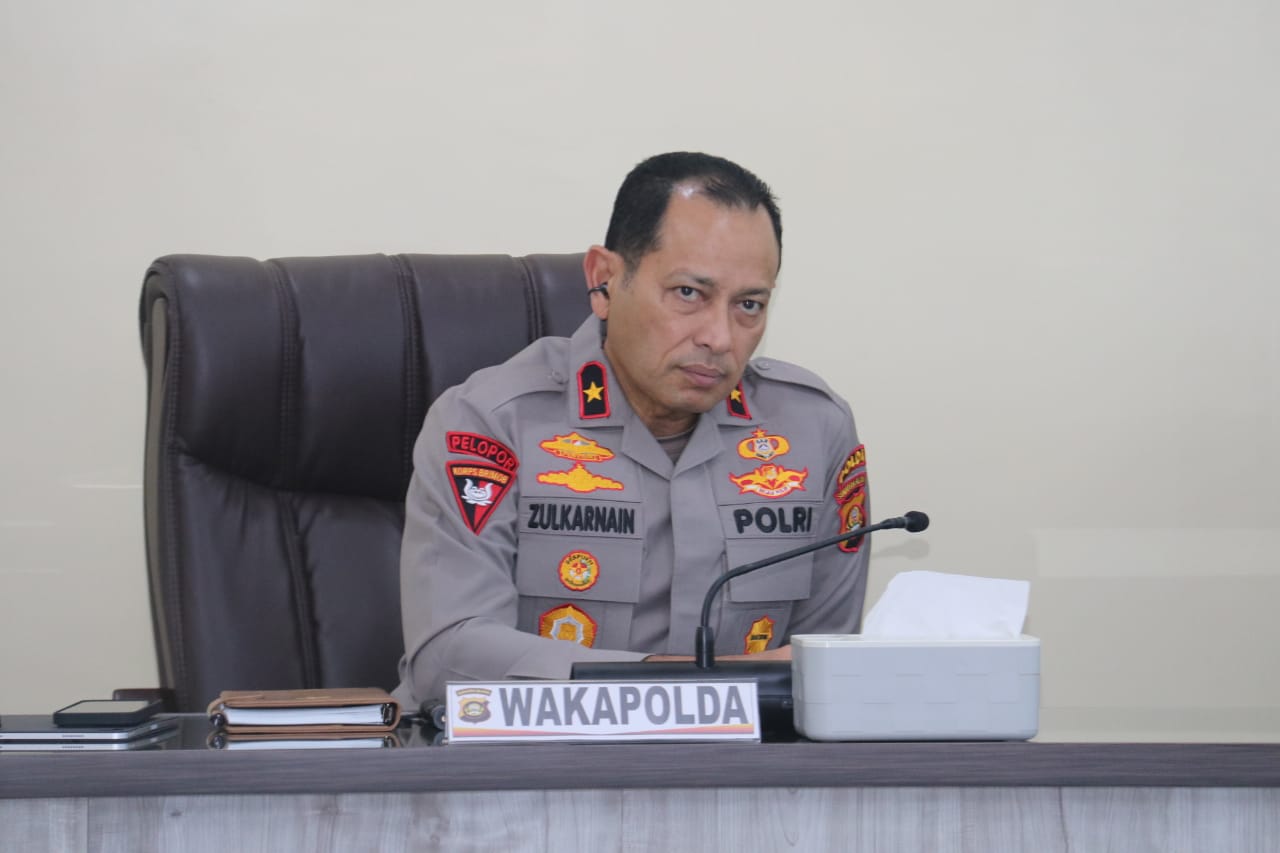 Palembang, Sumsel – Wakapolda Sumsel Brigjen. Pol. M.Zulkarnain S.I.K., M.S.i, Irwasda Kombes Pol Feri Handoko Soenarso, SH ,SIK beserta Pejabat Utama Polda Sumsel dan seluruh Kapolres/ta jajaran Polda Sumsel. mengikuti Zoom Meeting Rapat Koordinasi Lintas Sektoral Dalam Rangka Kesiapan Menghadapi Idul Fitri 1446 H Tahun 2025. Yang berlngsung di Ruang Vidcon Gedung Utama Presisi Mapolda Sumsel Jalan Jenderal Sudirman Palembang Senin, (10/3/2025).