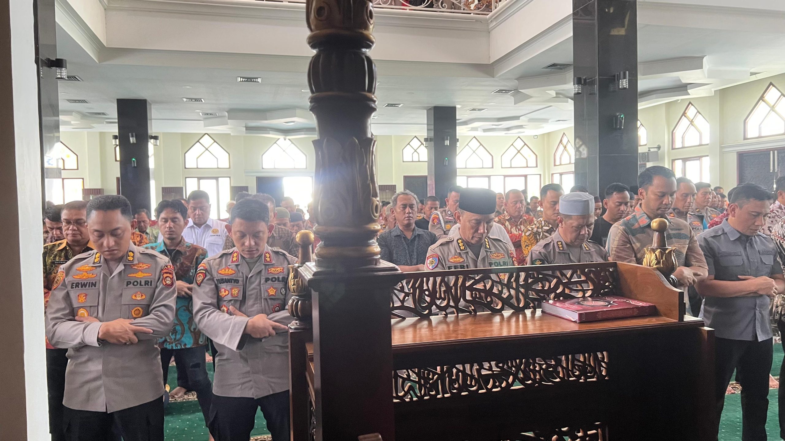 Sebagai bentuk Duka Mendalam Polda Sumsel menggelar Salat gaib dilaksanakan di Masjid Assa’ adah Polda Sumsel, Jumat (29/8/2025) seusai pelaksanaan salat Jumat. Ibadah dipimpin oleh imam masjid, Ustaz H.Zulfikar dari Kementerian agama Kota Palembang dan diikuti ratusan jamaah dari personel hingga pejabat utama Polda Sumsel
